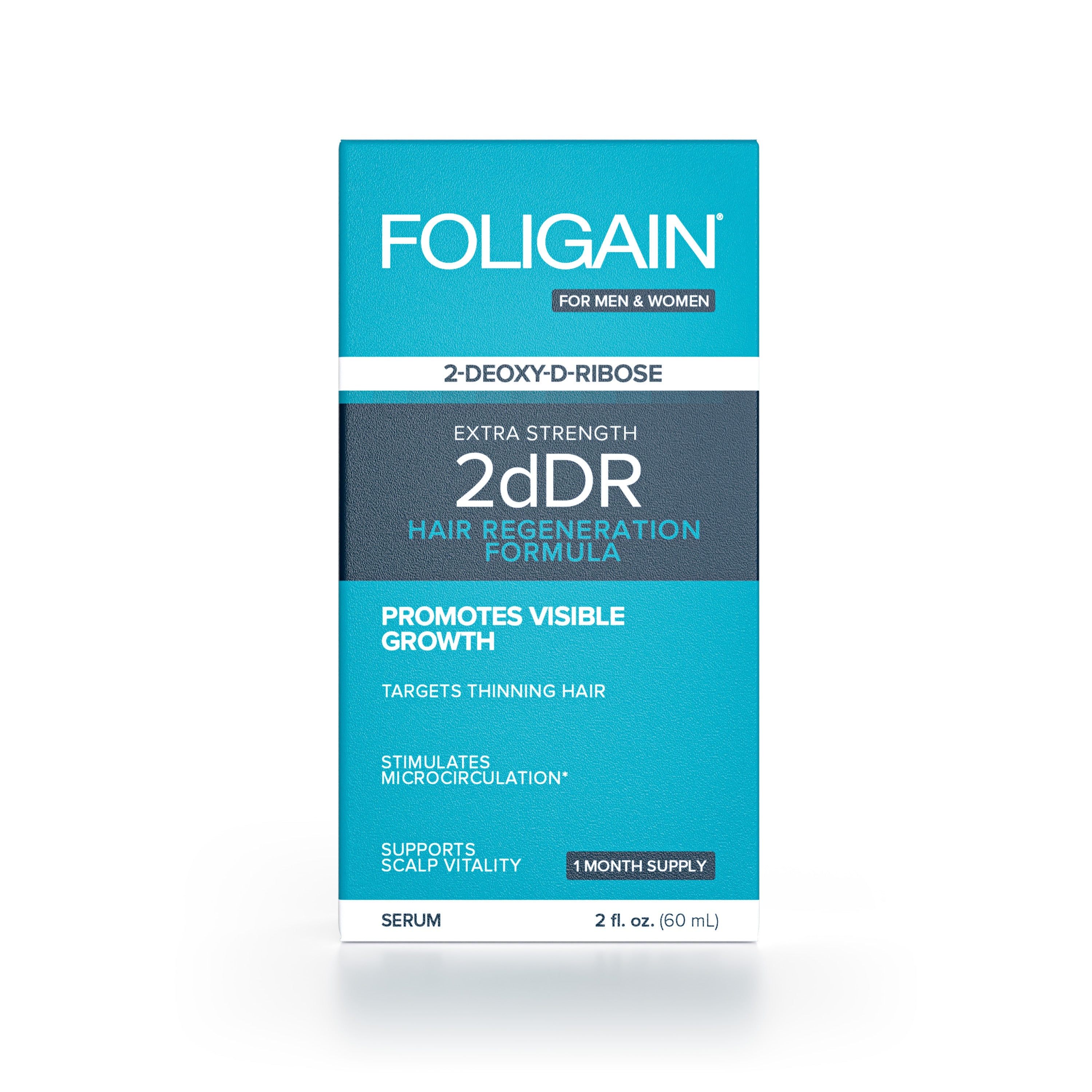 FOLIGAIN® 2dDR Hair Regeneration Serum er udviklet til mænd og kvinder, der ønsker en mere proaktiv måde at tackle tidlig udtynding på og understøtte et fyldigere udseende hår. Dette avancerede serum leverer 1,5% 2-deoxy-D-ribose (2dDR) direkte til hovedbunden for at hjælpe med at genoplade overfladen, hvor håret kan miste volumen. Den lette tekstur absorberes hurtigt, kan nemt lagdeles med andre produkter og passer naturligt ind i enhver daglig rutine.